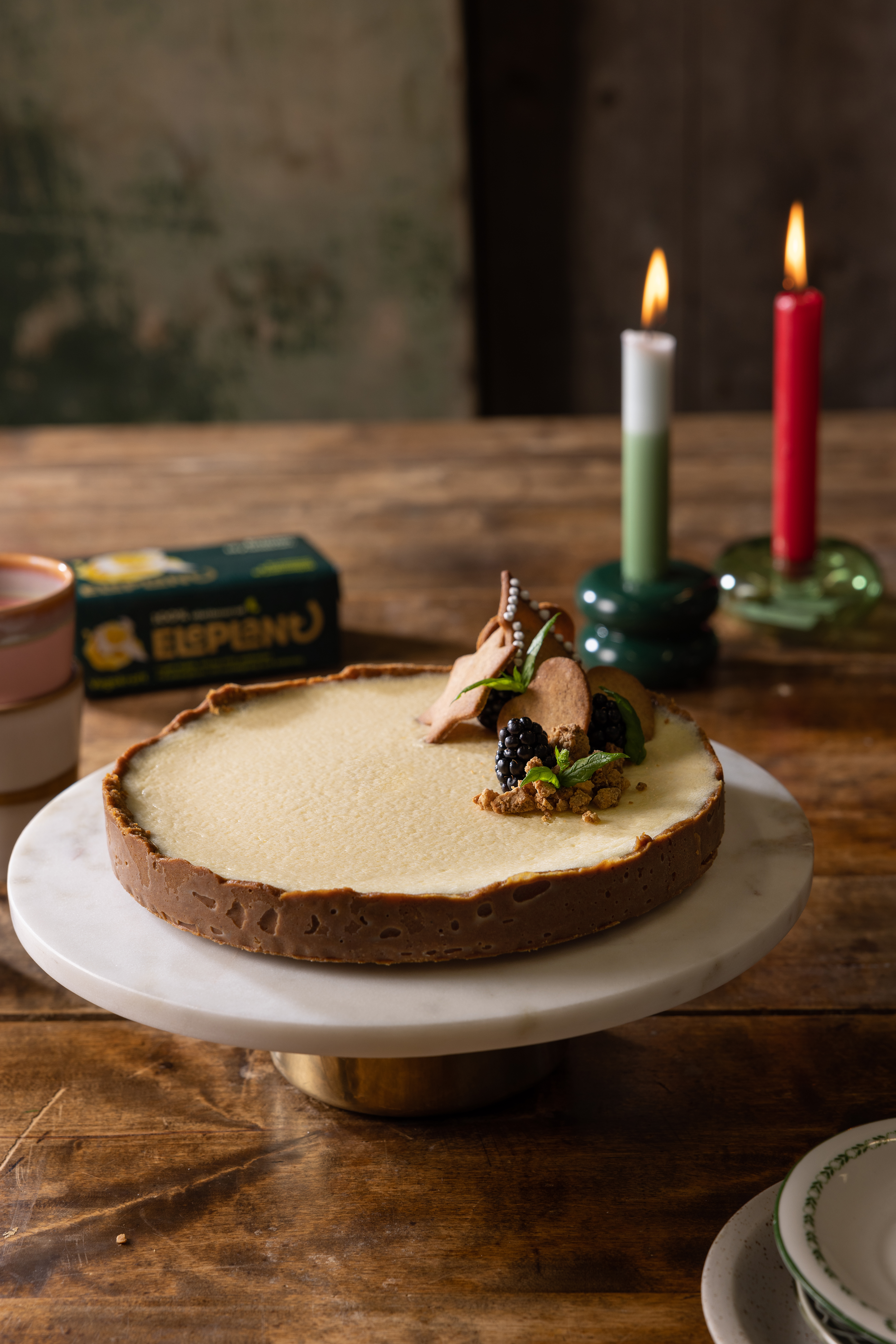 Pierniczki lub ciasteczka kuchenne zmiksuj na drobne okruchy. Wymieszaj z roztopionym Eleplantem. Gotową mieszankę wyłóż na formę o średnicy ok. 24 cm, wyłożoną papierem do pieczenia. Uklep masę równomiernie, także na brzegach. Wstaw formę do lodówki.